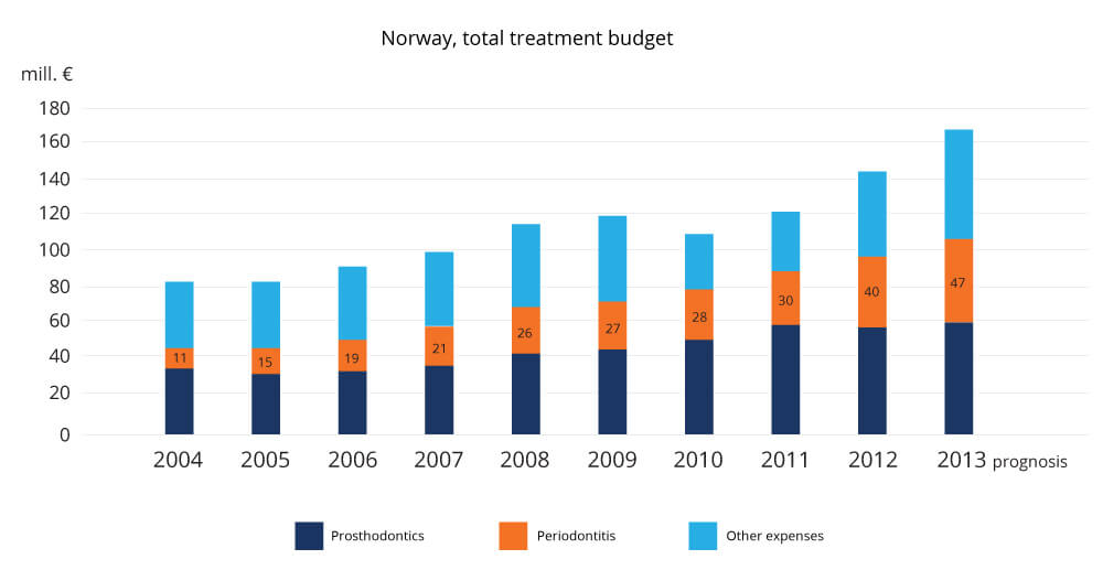 Periodontitis costs increased from 12% of total budget to 27% within 10 years. Dental expenditure is the 4th largest cost in industrialised countries.